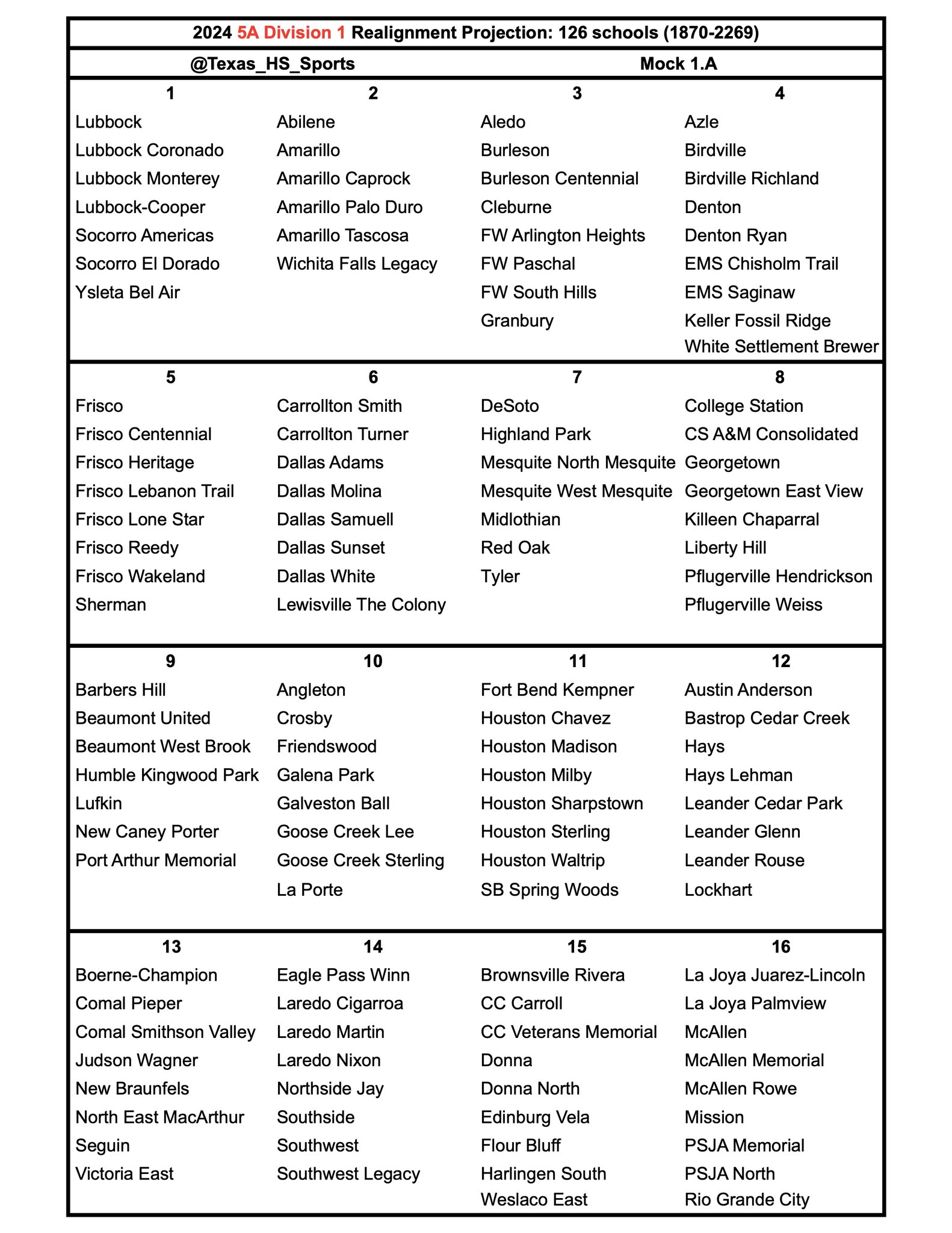 Texas HS Sports on X: “2024 UIL Realignment Projections: 5A